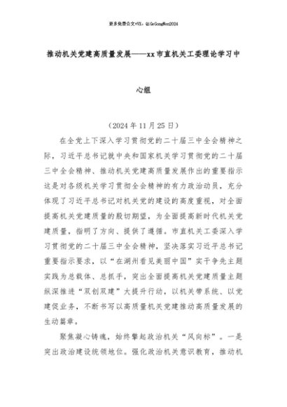【七哥公文】2024年:推动机关党建高质量发展——xx市直机关工委理论学习中心组+更多免费公文+VX:QiGeGongWen2024