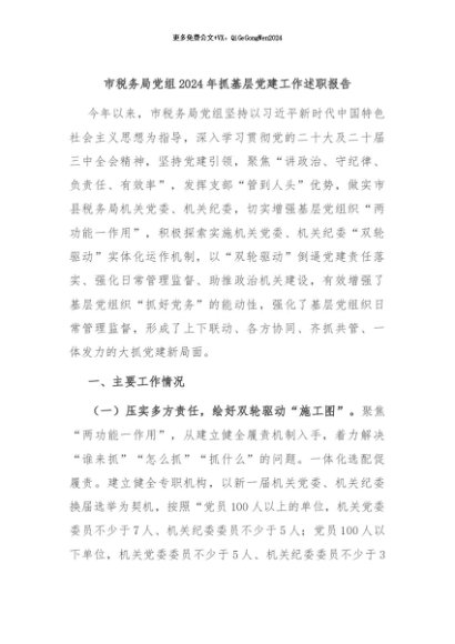 / 【七哥公文】2024年:市税务局党组2024年抓基层党建工作述职报告+更多免费公文+VX:QiGeGongWen2024