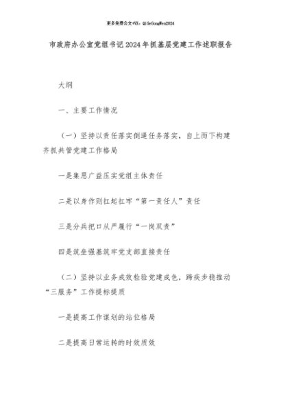 【七哥公文】2024年:市政府办公室党组书记2024年抓基层党建工作述职报告+更多免费公文+VX:QiGeGongWen2024