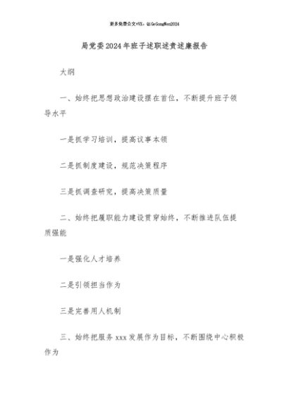 / 【七哥公文】2024年:局党委2024年班子述职述责述廉报告+更多免费公文+VX:QiGeGongWen2024