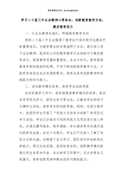 【七哥公文】2024年:学习二十届三中全会精神心得体会:创新教育教学方法,激发教育活力+更多免费公文+VX:QiGeGongWen2024