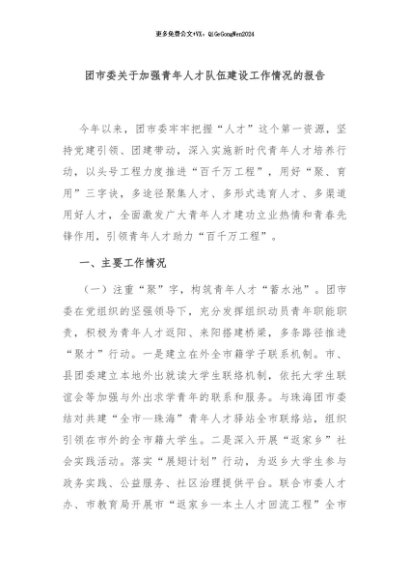 / 【七哥公文】2024年:团市委关于加强青年人才队伍建设工作情况的报告+更多免费公文+VX:QiGeGongWen2024