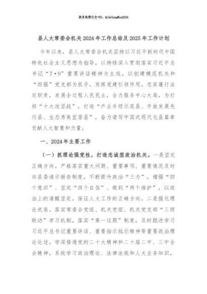 【七哥公文】2024年:县人大常委会机关2024年工作总结及2025年工作计划+更多免费公文+VX:QiGeGongWen2024