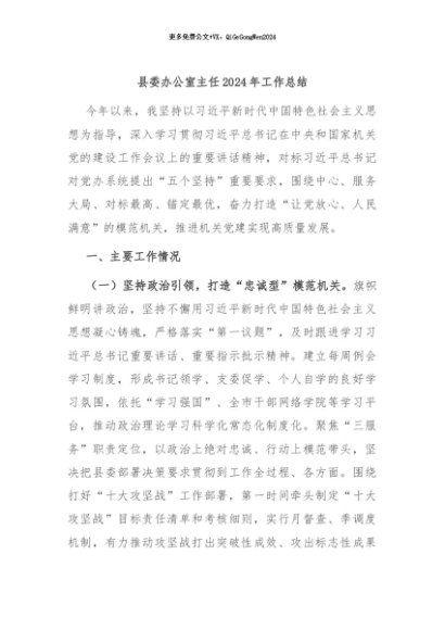 / 【七哥公文】2024年:县委办公室主任2024年工作总结+更多免费公文+VX:QiGeGongWen2024
