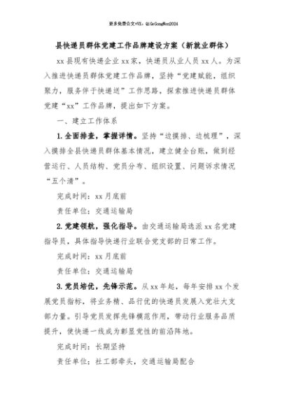 / 【七哥公文】2024年:县快递员群体党建工作品牌建设方案(新就业群体)+更多免费公文+VX:QiGeGongWen2024