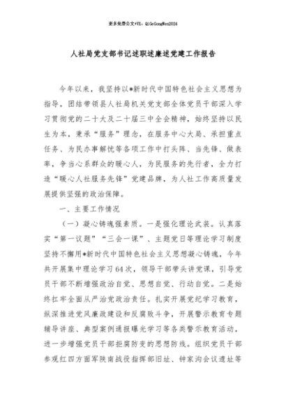 / 【七哥公文】2024年:人社局党支部书记述职述廉述党建工作报告+更多免费公文+VX:QiGeGongWen2024