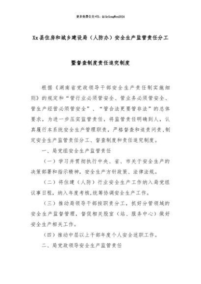 【七哥公文】2024年:Xx县住房和城乡建设局(人防办)安全生产监管责任分工暨督查制度责任追究制度+更多免费公文+VX:QiGeGongWen2024
