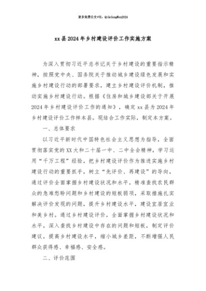 / 【七哥公文】2024年:xx县2024年乡村建设评价工作实施方案+更多免费公文+VX:QiGeGongWen2024