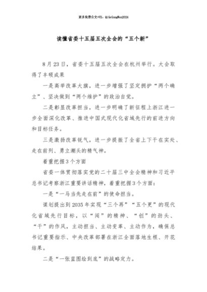 / 【七哥公文】2024年:读懂省委十五届五次全会的“五个新”+更多免费公文+VX:QiGeGongWen2024