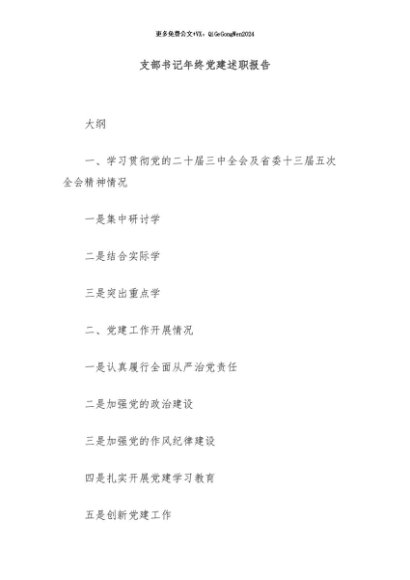 / 【七哥公文】2024年:支部书记年终党建述职报告+更多免费公文+VX:QiGeGongWen2024
