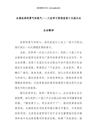 【七哥公文】2024年:永葆改革的勇气和锐气——三论学习贯彻省委十五届五次全会精神+更多免费公文+VX:QiGeGongWen2024