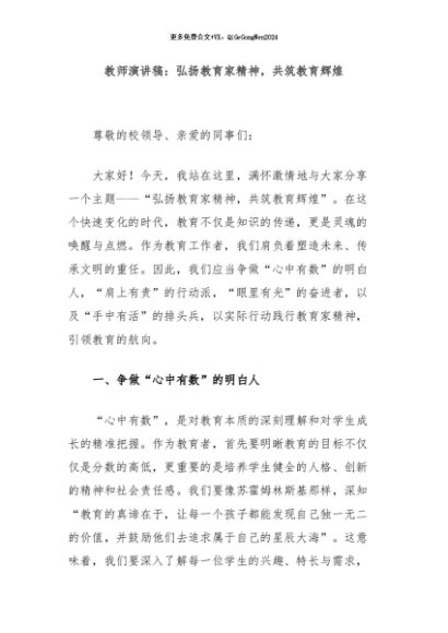 【七哥公文】2024年:教师演讲稿:弘扬教育家精神,共筑教育辉煌+更多免费公文+VX:QiGeGongWen2024