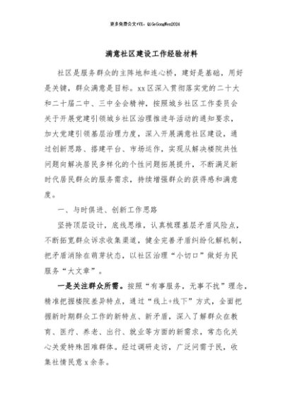 / 【七哥公文】2024年:满意社区建设工作经验材料+更多免费公文+VX:QiGeGongWen2024