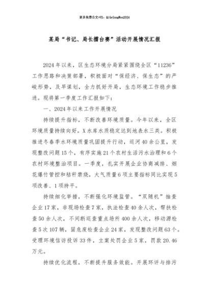 / 【七哥公文】2024年:某局“书记、局长擂台赛”活动开展情况汇报+更多免费公文+VX:QiGeGongWen2024