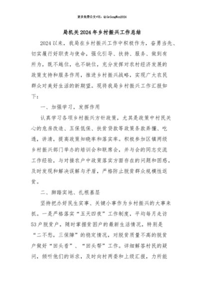 / 【七哥公文】2024年:局机关2024年乡村振兴工作总结+更多免费公文+VX:QiGeGongWen2024