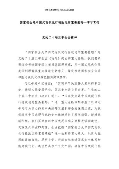 【七哥公文】2024年:国家安全是中国式现代化行稳致远的重要基础—学习贯彻党的二十届三中全会精神+更多免费公文+VX:QiGeGongWen2024