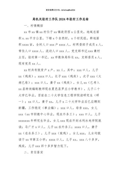 / 【七哥公文】2024年:局机关驻村工作队2024年驻村工作总结+更多免费公文+VX:QiGeGongWen2024