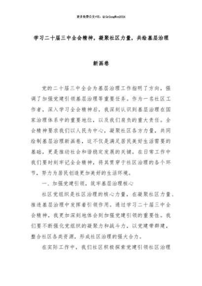 【七哥公文】2024年:学习二十届三中全会精神,凝聚社区力量,共绘基层治理新画卷+更多免费公文+VX:QiGeGongWen2024