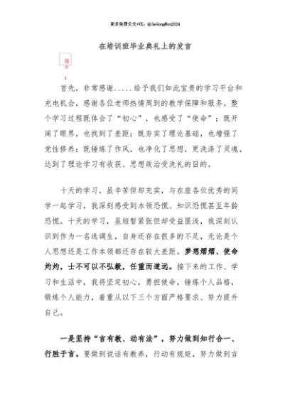 / 【七哥公文】2024年:在培训班毕业典礼上的发言+更多免费公文+VX:QiGeGongWen2024