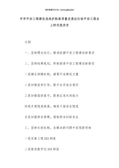 【七哥公文】2024年:守牢平安工程建设底线护航高质量发展在打造平安工程会上的交流发言+更多免费公文+VX:QiGeGongWen2024