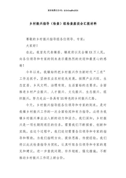 / 【七哥公文】2024年:乡村振兴指导(检查)组检查座谈会汇报材料+更多免费公文+VX:QiGeGongWen2024