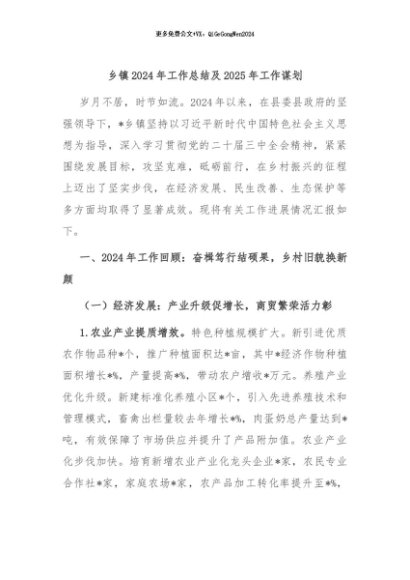/ 【七哥公文】2024年:乡镇2024年工作总结及2025年工作谋划+更多免费公文+VX:QiGeGongWen2024