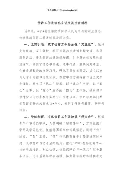 / 【七哥公文】2024年:信访工作法治化会议交流发言材料+更多免费公文+VX:QiGeGongWen2024