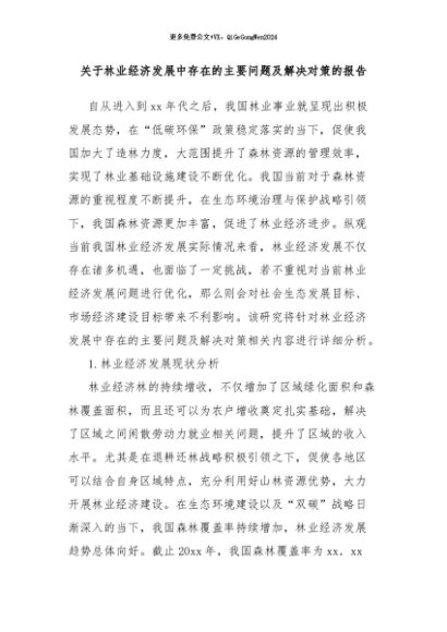 / 【七哥公文】2024年:关于林业经济发展中存在的主要问题及解决对策的报告+更多免费公文+VX:QiGeGongWen2024