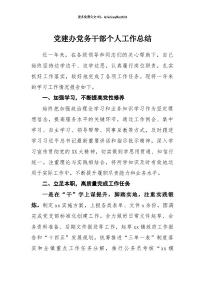 / 【七哥公文】2024年:党建办党务干部个人工作总结+更多免费公文+VX:QiGeGongWen2024
