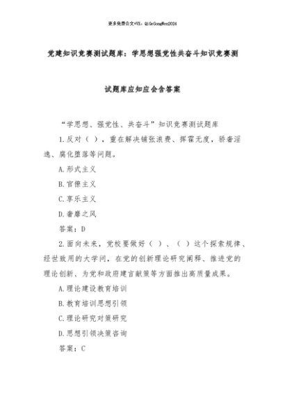 【七哥公文】2024年:党建知识竞赛测试题库:学思想强党性共奋斗知识竞赛测试题库应知应会含答案+更多免费公文+VX:QiGeGongWen2024
