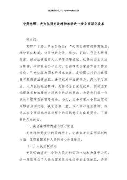 / 【七哥公文】2024年:专题党课:大力弘扬宪法精神推动进一步全面深化改革+更多免费公文+VX:QiGeGongWen2024