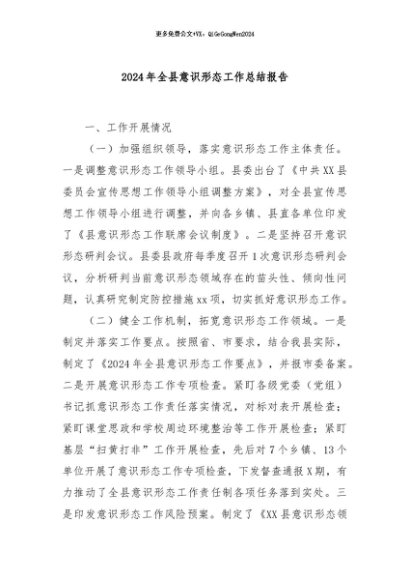 / 【七哥公文】2024年:2024年全县意识形态工作总结报告+更多免费公文+VX:QiGeGongWen2024