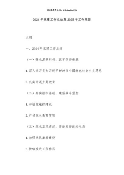 / 【七哥公文】2024年:2024年党建工作总结及2025年工作思路+更多免费公文+VX:QiGeGongWen2024
