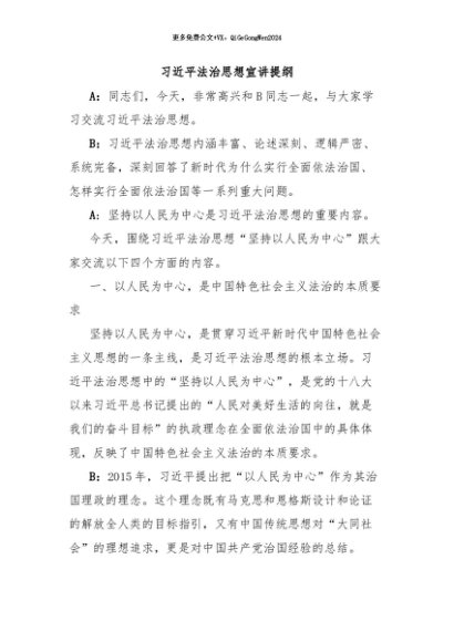 【七哥公文】2024年:习近平法治思想宣讲提纲+更多免费公文+VX:QiGeGongWen2024