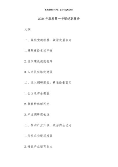 / 【七哥公文】2024年:2024年驻村第一书记述职报告+更多免费公文+VX:QiGeGongWen2024