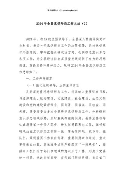 / 【七哥公文】2024年:2024年全县意识形态工作总结(2)+更多免费公文+VX:QiGeGongWen2024
