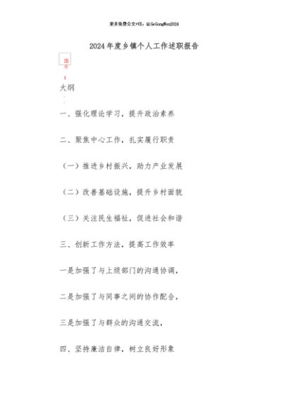/ 【七哥公文】2024年:2024年度乡镇个人工作述职报告+更多免费公文+VX:QiGeGongWen2024