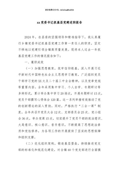 / 【七哥公文】2024年:xx党委书记抓基层党建述职报告+更多免费公文+VX:QiGeGongWen2024