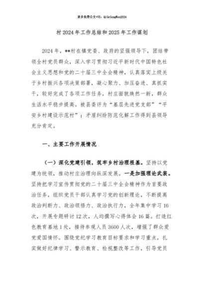 / 【七哥公文】2024年:村2024年工作总结和2025年工作谋划+更多免费公文+VX:QiGeGongWen2024
