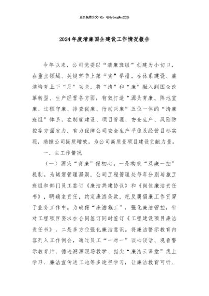 / 【七哥公文】2024年:2024年度清廉国企建设工作情况报告+更多免费公文+VX:QiGeGongWen2024