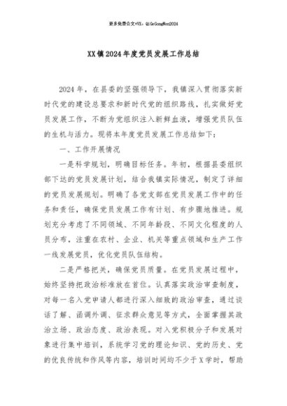 【七哥公文】2024年:XX镇2024年度党员发展工作总结+更多免费公文+VX:QiGeGongWen2024