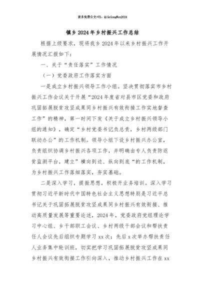 / 【七哥公文】2024年:镇乡2024年乡村振兴工作总结+更多免费公文+VX:QiGeGongWen2024