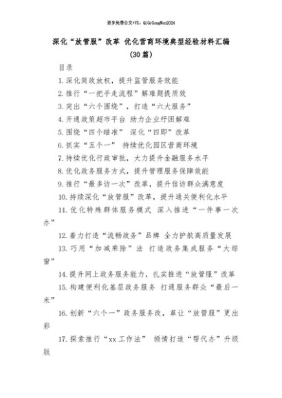 【七哥公文】2024年:(30篇)深化“放管服”改革优化营商环境典型经验材料汇编+更多免费公文+VX:QiGeGongWen2024