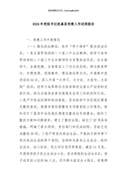 / 【七哥公文】2024年:2024年党组书记抓基层党建工作述职报告+更多免费公文+VX:QiGeGongWen2024