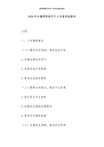 / 【七哥公文】2024年:2024年乡镇领导班子个人年度述法报告+更多免费公文+VX:QiGeGongWen2024
