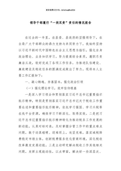 / 【七哥公文】2024年:领导干部履行“一岗双责”责任的情况报告+更多免费公文+VX:QiGeGongWen2024