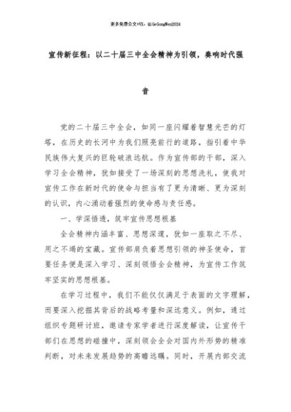【七哥公文】2024年:宣传新征程:以二十届三中全会精神为引领,奏响时代强音+更多免费公文+VX:QiGeGongWen2024