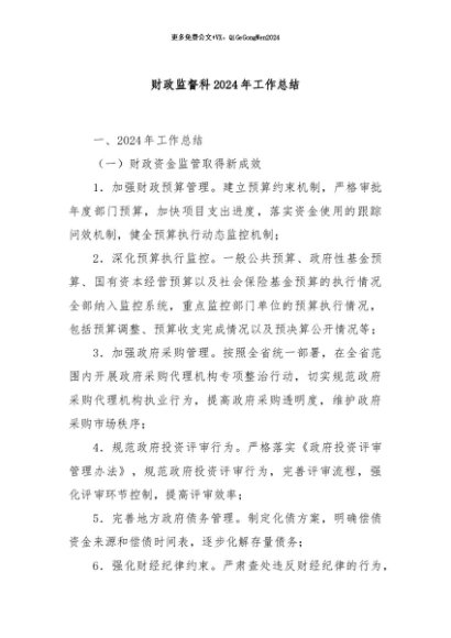 / 【七哥公文】2024年:财政监督科2024年工作总结+更多免费公文+VX:QiGeGongWen2024