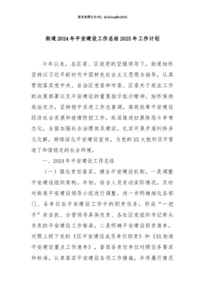 / 【七哥公文】2024年:街道2024年平安建设工作总结2025年工作计划+更多免费公文+VX:QiGeGongWen2024