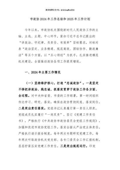 / 【七哥公文】2024年:市政协2024年工作总结和2025年工作计划+更多免费公文+VX:QiGeGongWen2024